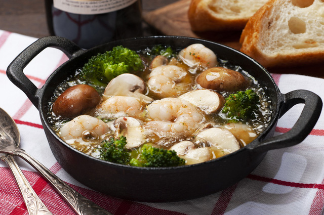 - ③ふつふつと沸騰したら、むき海老、マッシュルームを入れ、弱火で10分程度加熱する